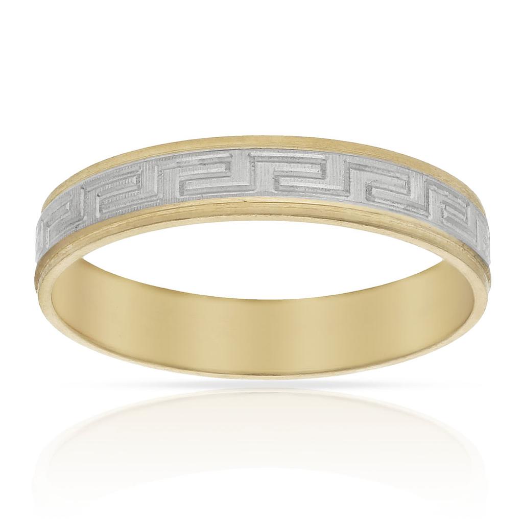 Alianza bicolor tallada greco brillo y mate 4mm. oro 18k