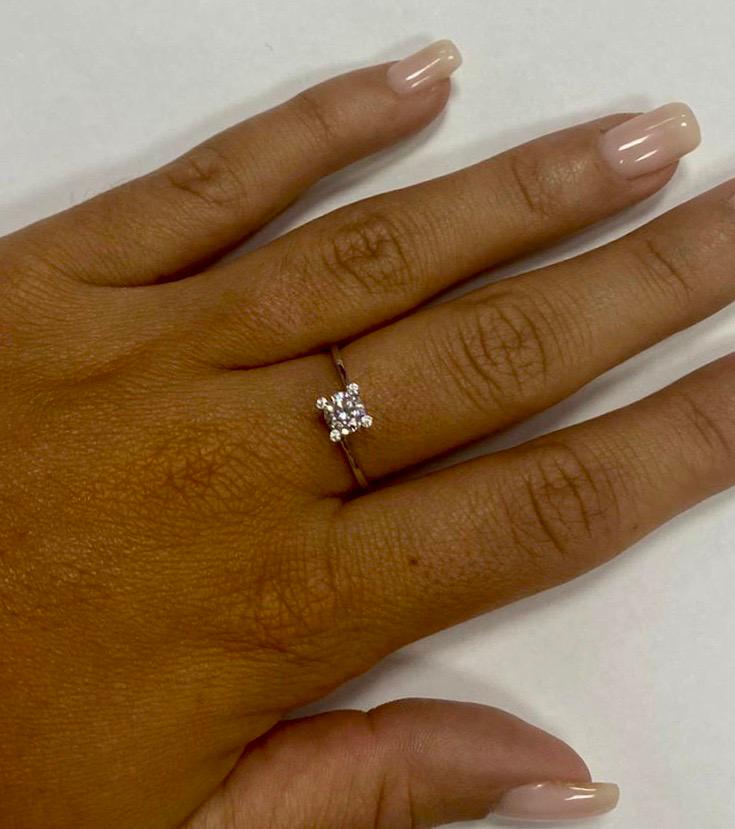 Anillo diseño classic circonita central redonda con 4 garras y circonitas en aro oro blanco de 18k