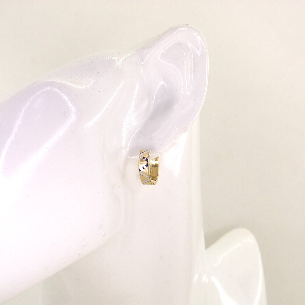 Aros huggies bicolor tallados y matizados.15x5mm.