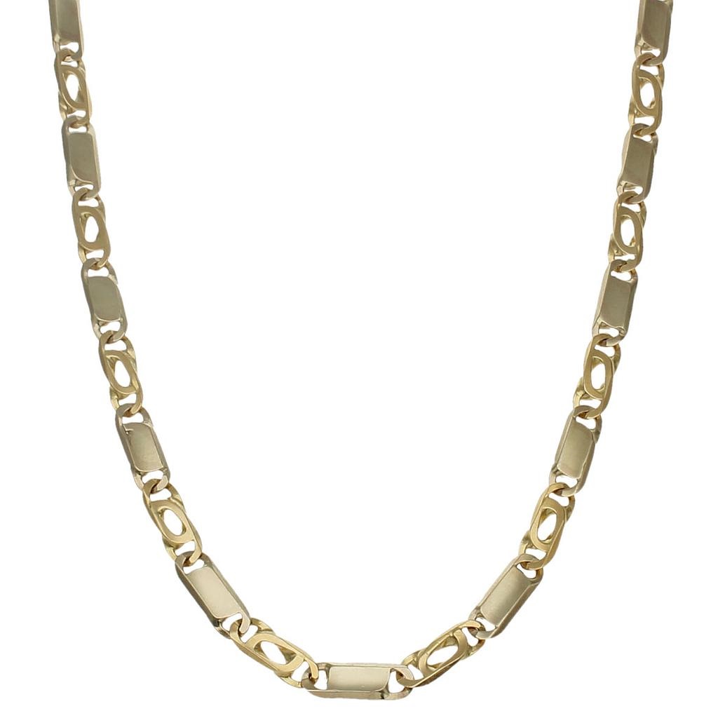 Cadena ancha modelo eslabon italiano macizo terminacion en brillo espejo con medida de ancho de 5,5mm. y largo de 60cm. en oro amarillo y oro blanco de 18k.