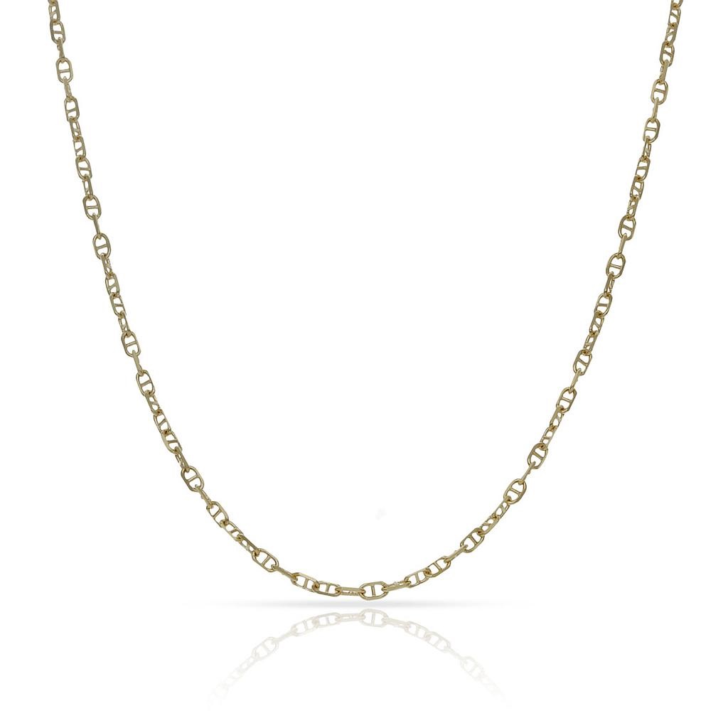 Cadena fina modelo ancora eslabón macizo con terminación en brillo espejo medida de ancho 1mm. y largo de 60cm. en oro amarillo de 18k.