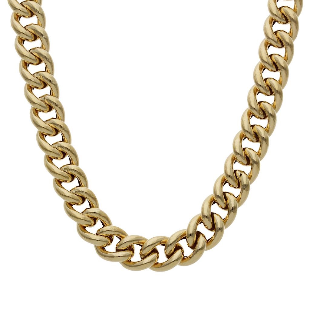 Cadena ancha modelo barbada hueca con terminacion en brillo espejo con medida de ancho de 8mm. y de largo 50cm. en oro amarillo de 18k.