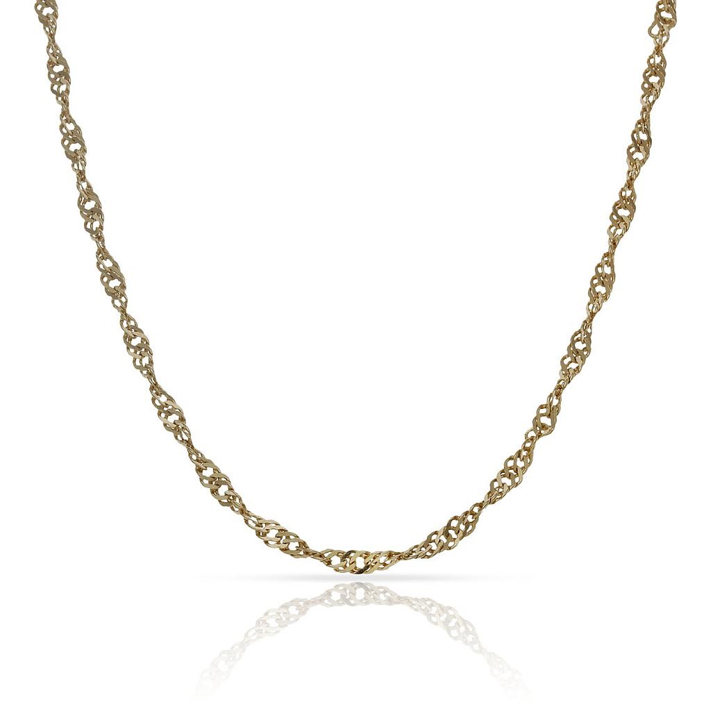 Cadena modelo singapur eslabón rizado con terminación en brillo espejo medida de ancho 2,5mm. y largo de 50cm. en oro amarillo de 18k.