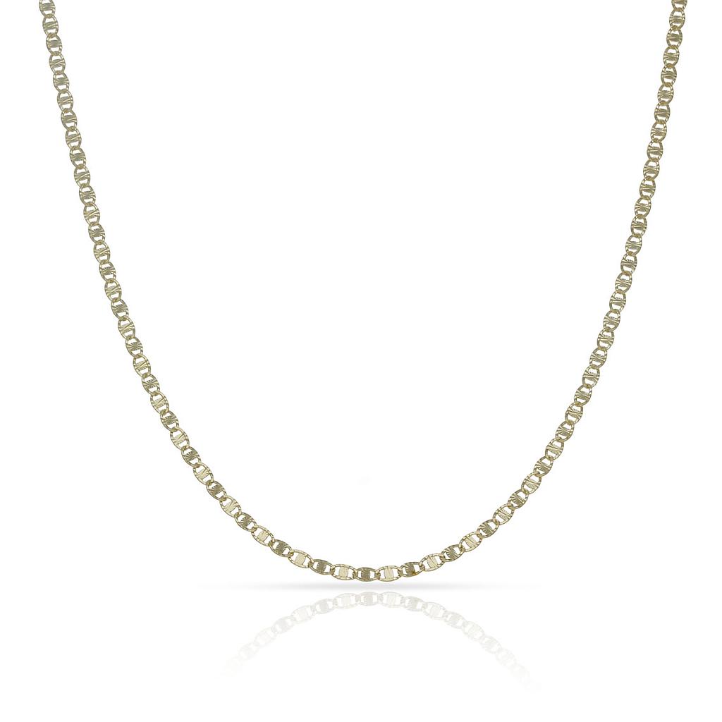 Cadena modelo ancla eslabón hueco plano tallado con terminación en brillo espejo medida de ancho 1,5mm. y largo de 45cm. en oro amarillo de 18k.