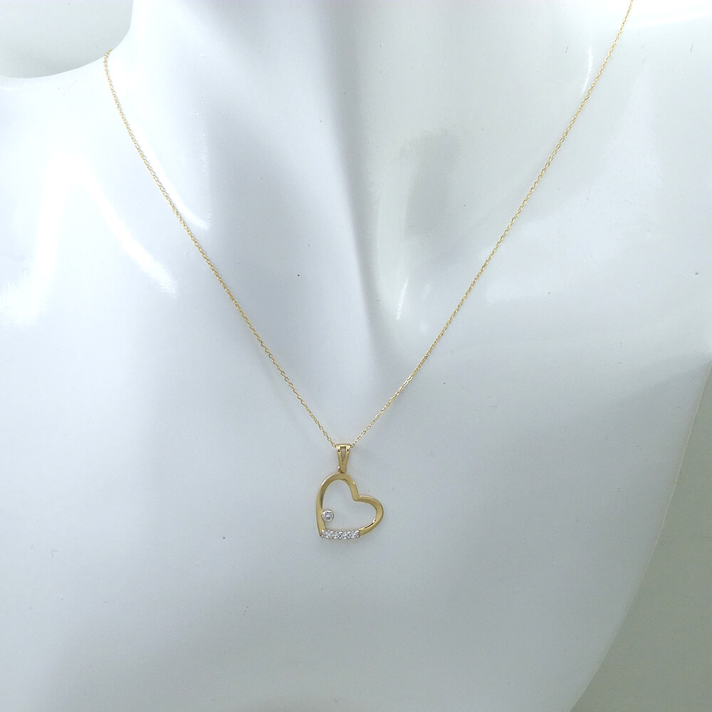 Colgante en forma de silueta de corazón en brillo espejo con circonitas, medida de 15x14mm.oro amarillo de 18k