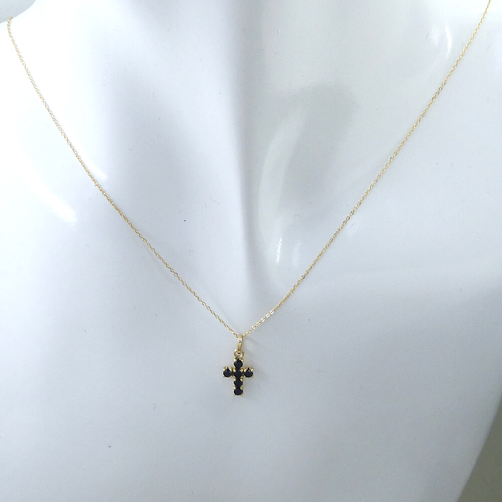 Colgante cruz con seis piedras negras medida 11mm.oro 18k