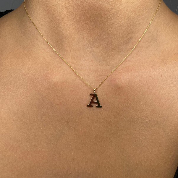 Colgante letra A lisa brillo oro 18k