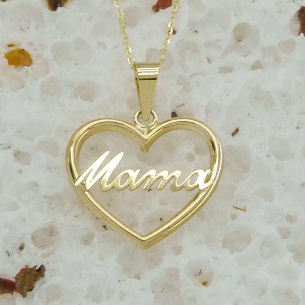 Colgante “mamá” en forma de corazón en brillo liso medida de 15mm.oro amarillo de 18k