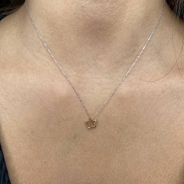 Colgante en forma de estrella en brillo espejo, medida de 9mm.oro amarillo de 18k