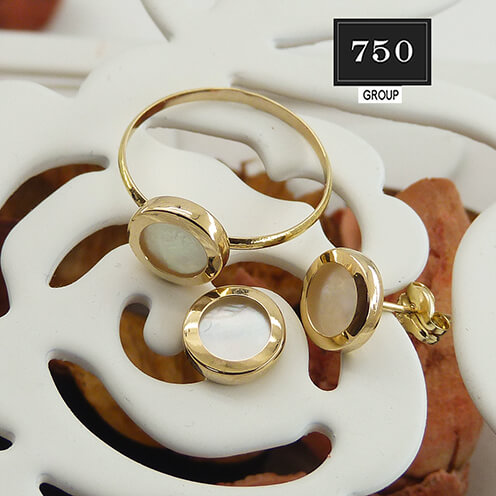 Colgante redondo brillo con nácar 8mm. oro 18k