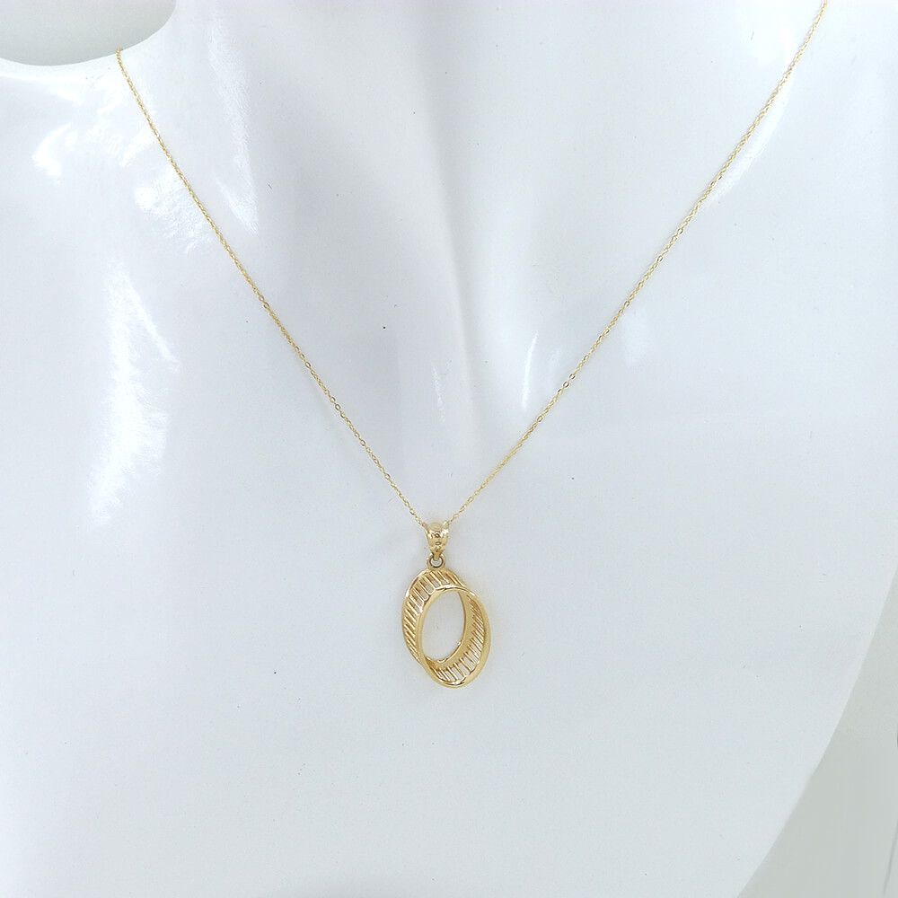 Colgante oval jaula doble cara brillo liso media 13mm.oro 18k