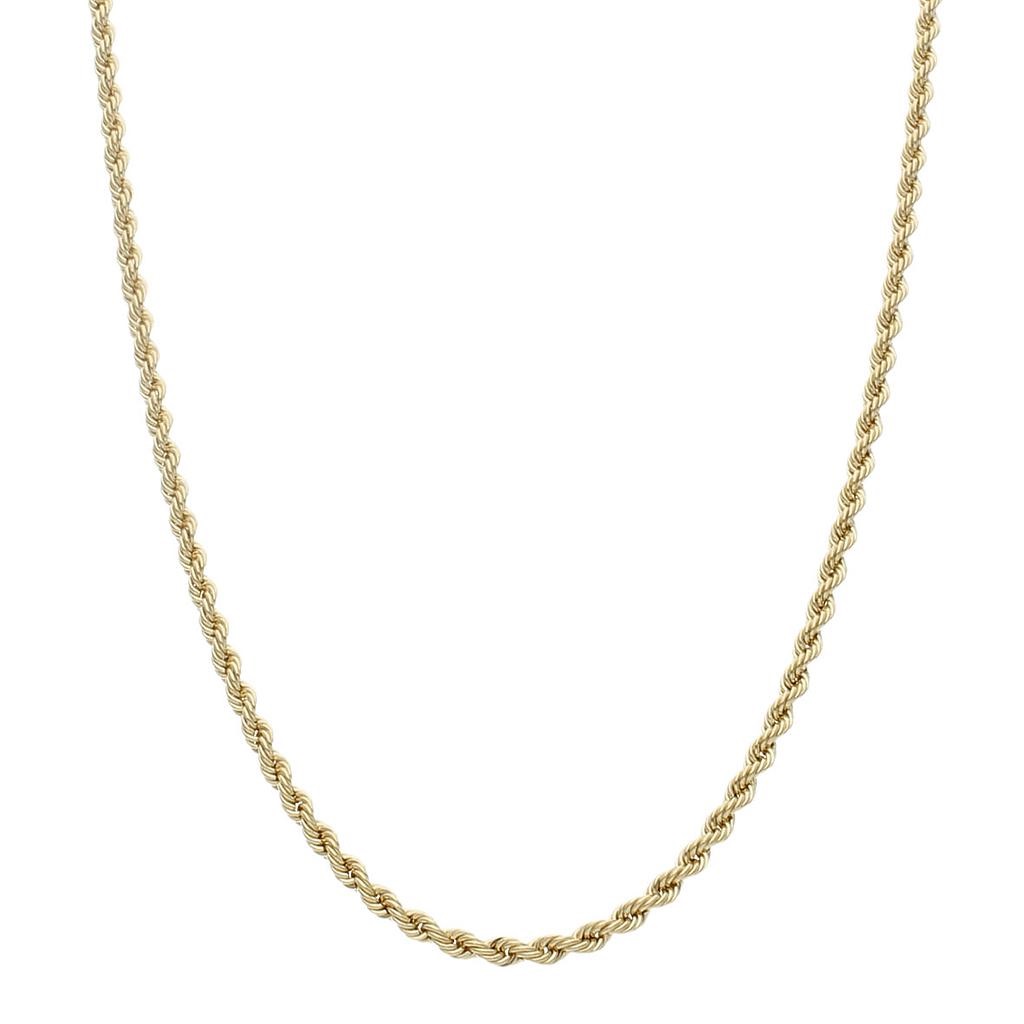 Cadena tipo cordon salomonico semihueco con terminacion en brillo espejo medida de grosor de 3,3mm. y largo de 50cm. en oro amarillo de 18k.