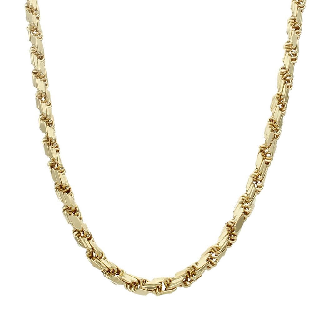 Cadena ancha tipo cordon salomonico semihueco y tallado con terminacion en brillo espejo medida de grosor de 5,5mm. y largo de 60cm. en oro amarillo de 18k.