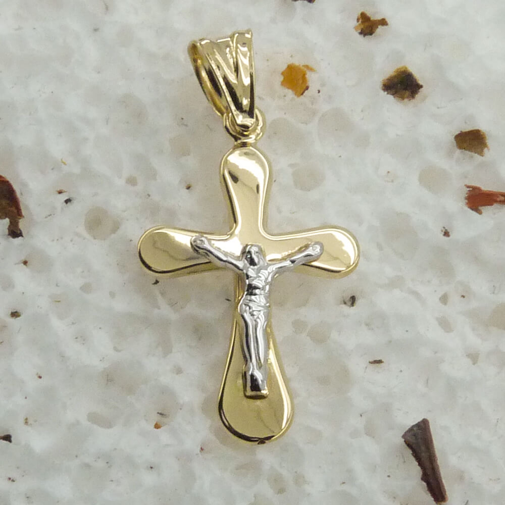 Colgante cruz bicolor con cristo oro 18k