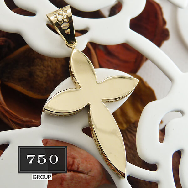 Colgante cruz lisa por una cara y por la otra calada por otra medida de 38x16mm.oro amarillo de 18k