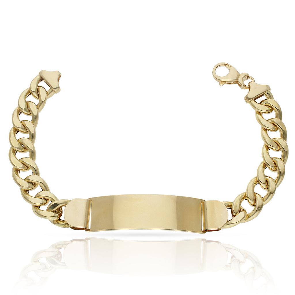 Esclava barbada con eslabón hueco y chapa acabada en brillo espejo, a 22,5cm. de largo, cierre de mosquetón en oro amarillo de 18k