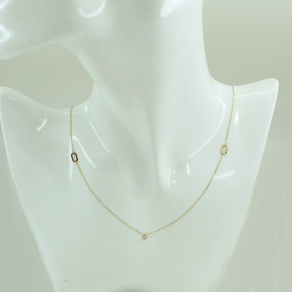 Gargantilla bicolor eslabón fino brillo y circonitas oro 18k