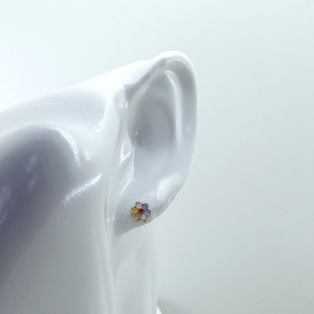 Pendiente esmalte colores margarita 6’5mm. oro 18k