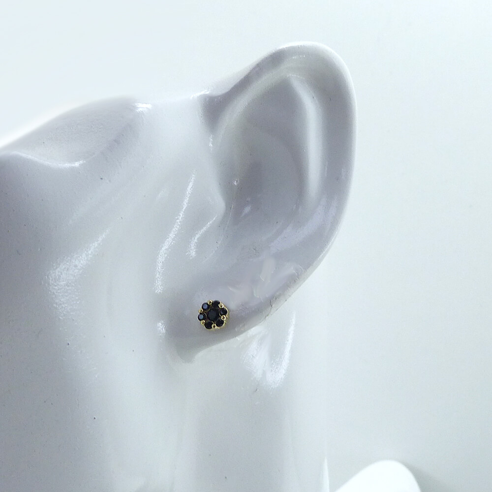 Pendientes cuajo con siete piedras negras, cierre a presión oro 18k