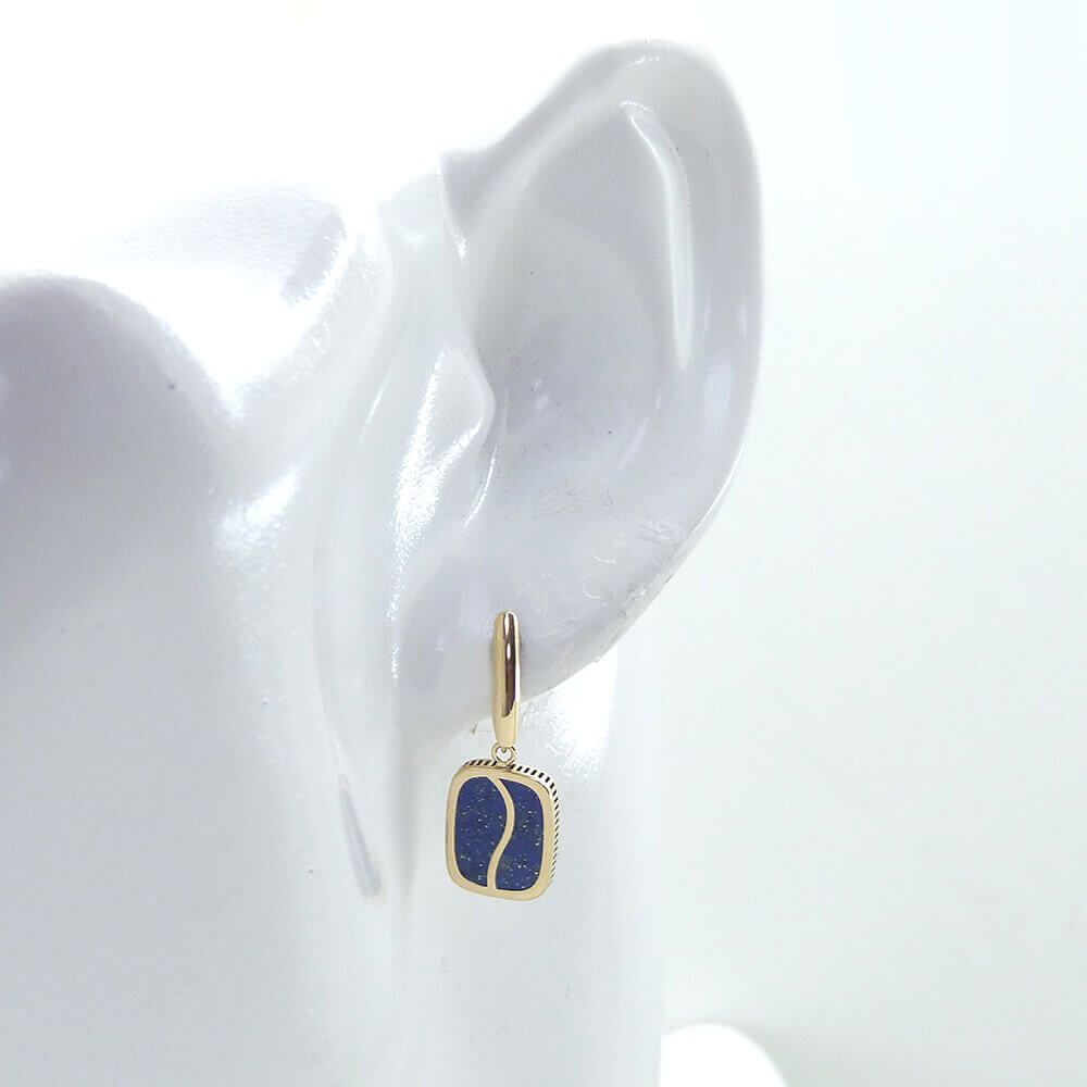 Pendientes barra brillo liso con piedra lapislázuli medida 10x8mm.cierre de presión oro18k