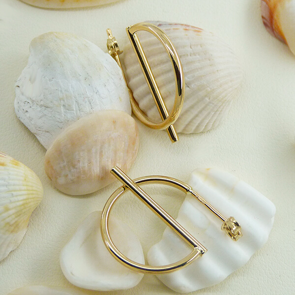 Pendientes medio aro brillo espejo liso medida 18mm. con cierre de presión en oro amarillo de 18k.