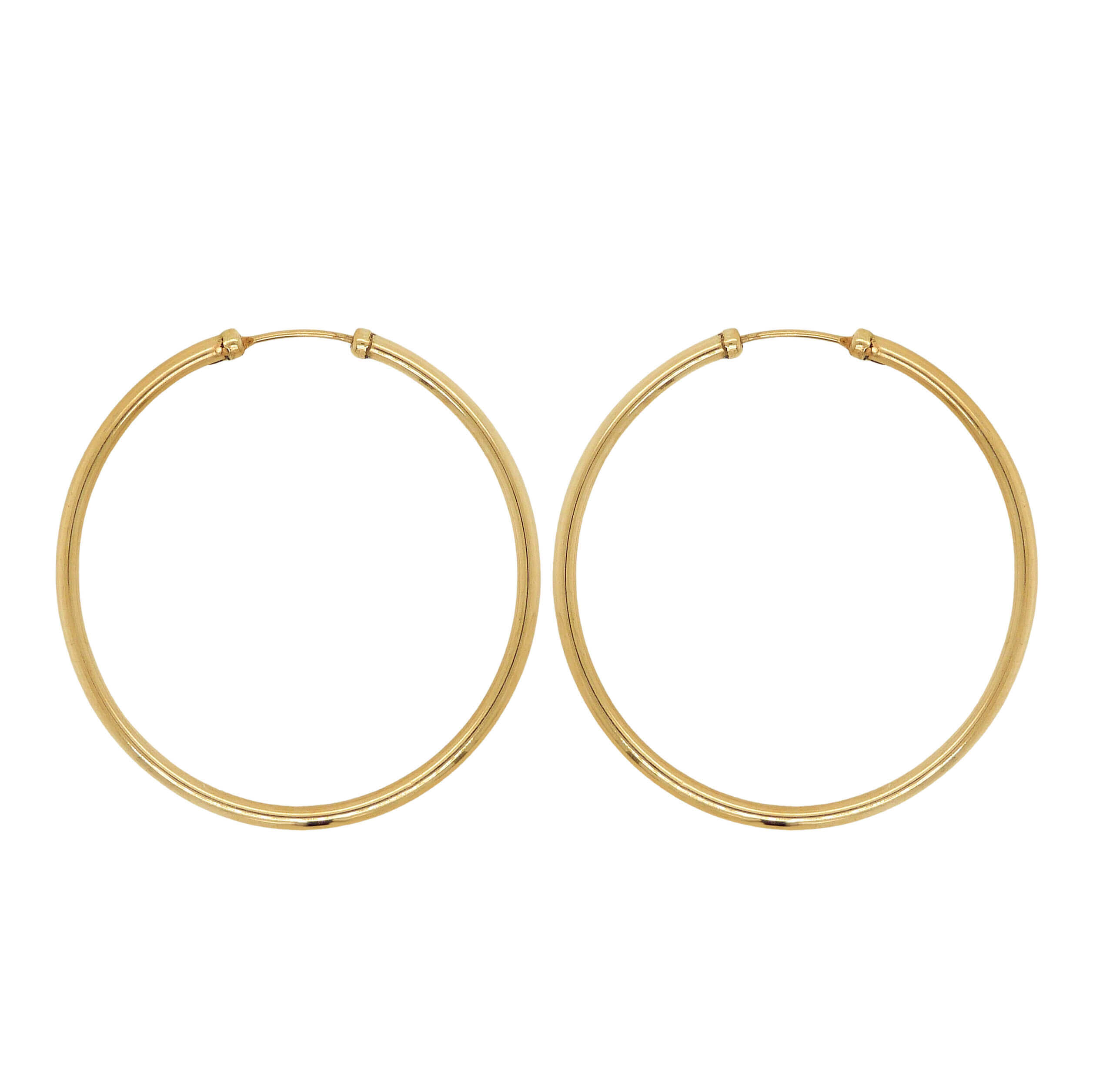 Pendientes aro de tubo lisos brillo espejo medidas 40×2 mm. en oro amarillo de 18k.