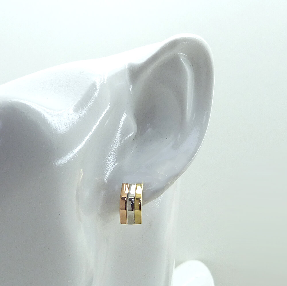 Pendientes bandas tricolor brillo 11x6mm. oro 18k