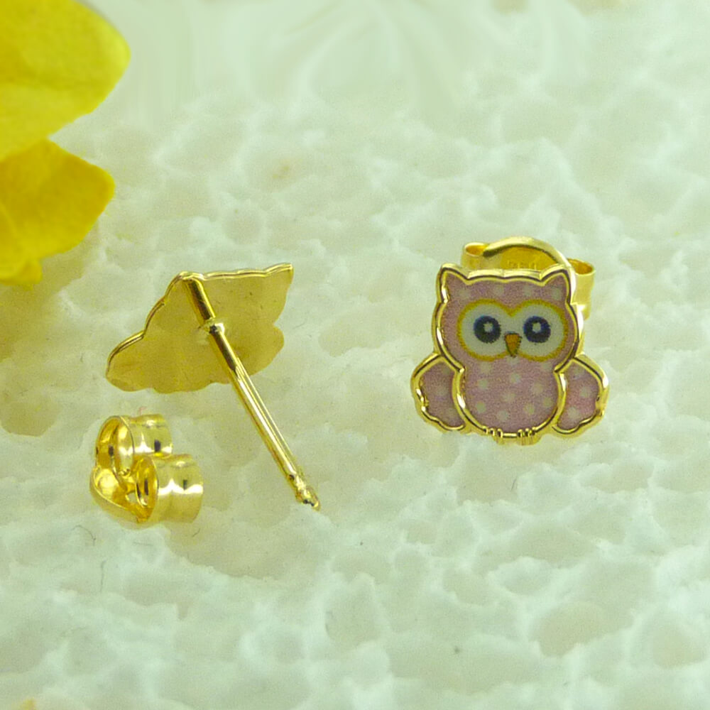 Pendientes de búho con esmalte oro de 18k