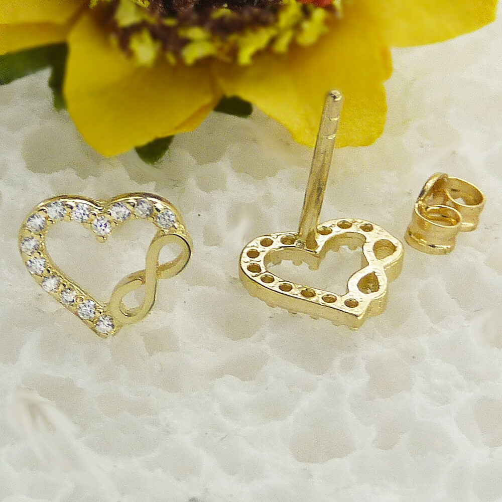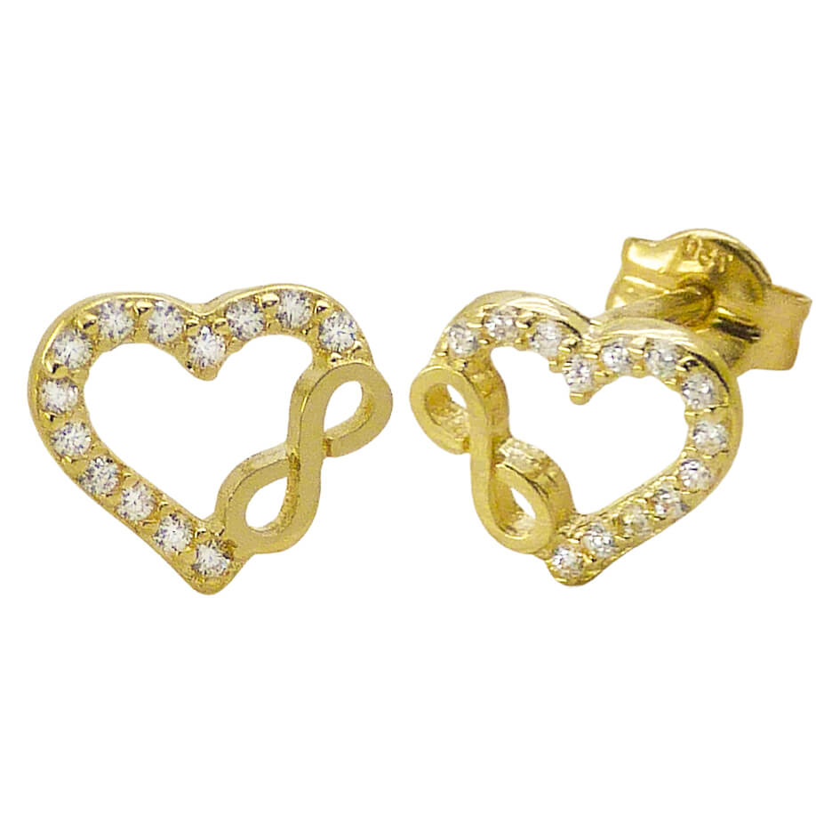 Pendientes corazón e infinito con circonitas oro 18k