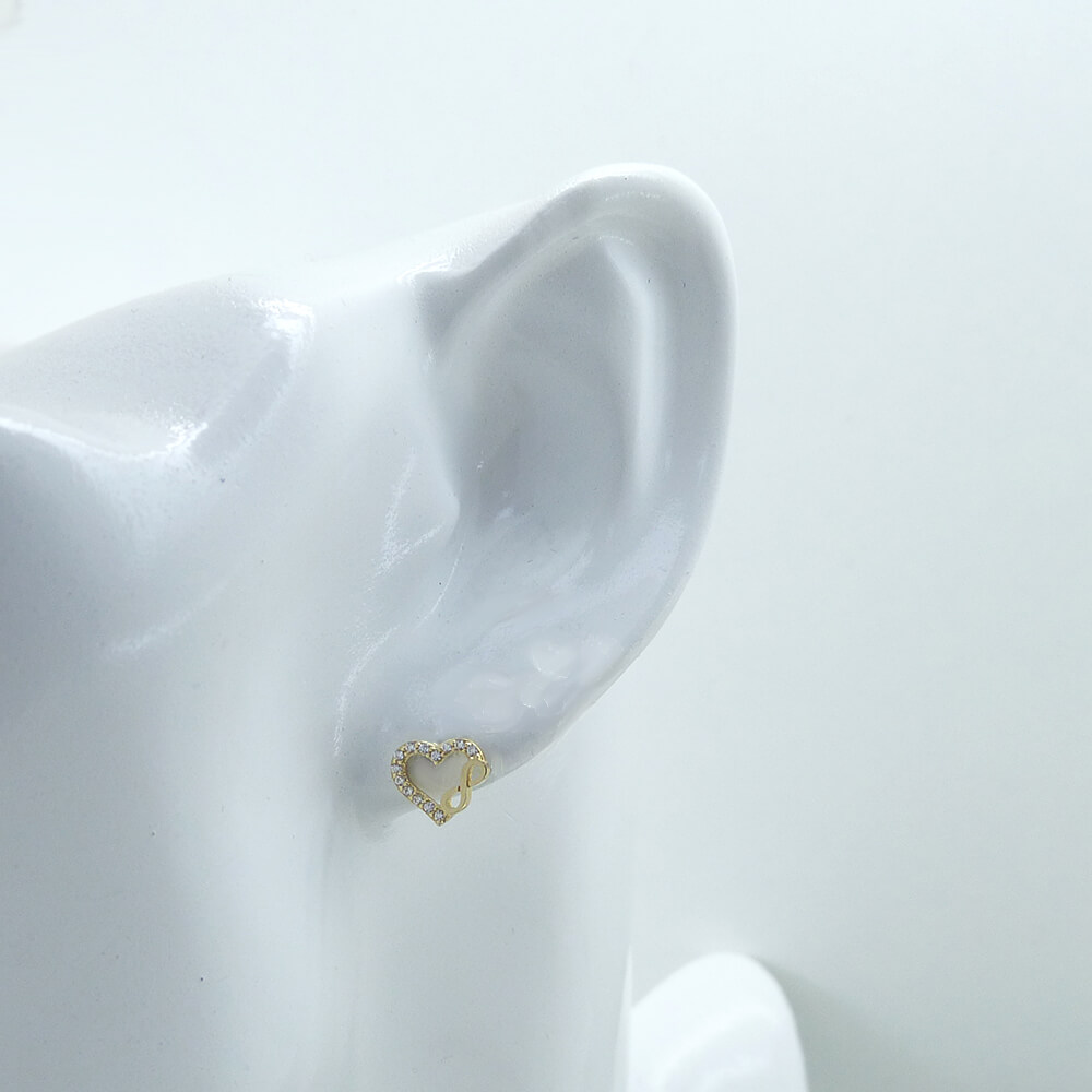 Pendientes corazón e infinito con circonias.8mm.