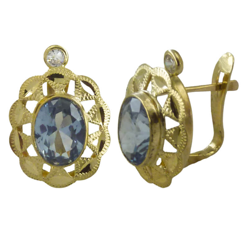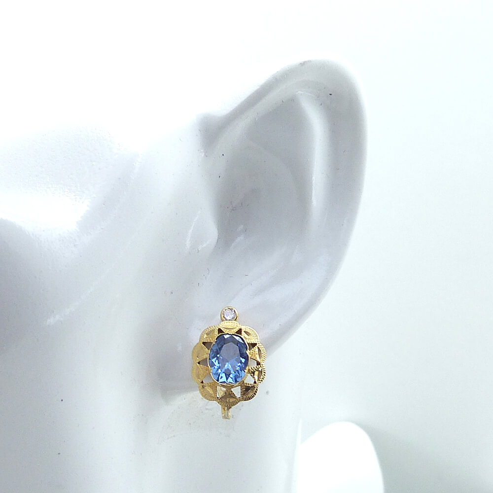 Pendientes cubana medida 8x6mm piedra color aguamarina cierre catalan oro 18k