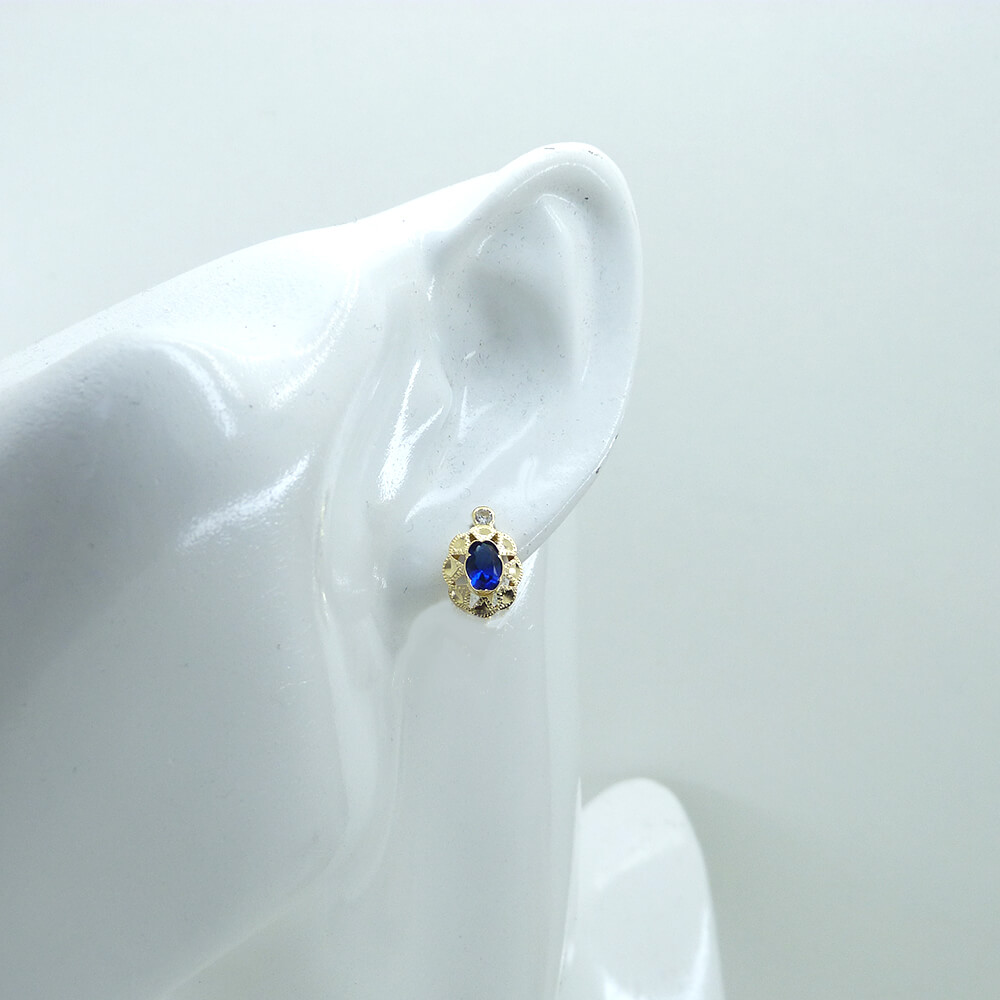 Pendientes cubana piedra de 6x4mm color zafiro.14x9mm.