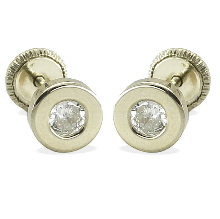 Pendientes donut con circonita, medida de 6mm. cierre de rosca en oro blanco 18k