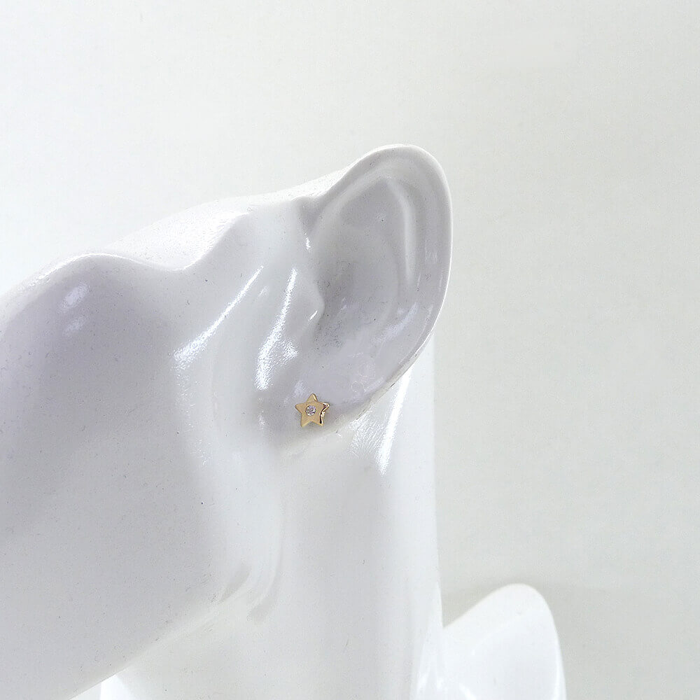 Pendientes estrella lisos brillo 7mm con circonita oro 18k