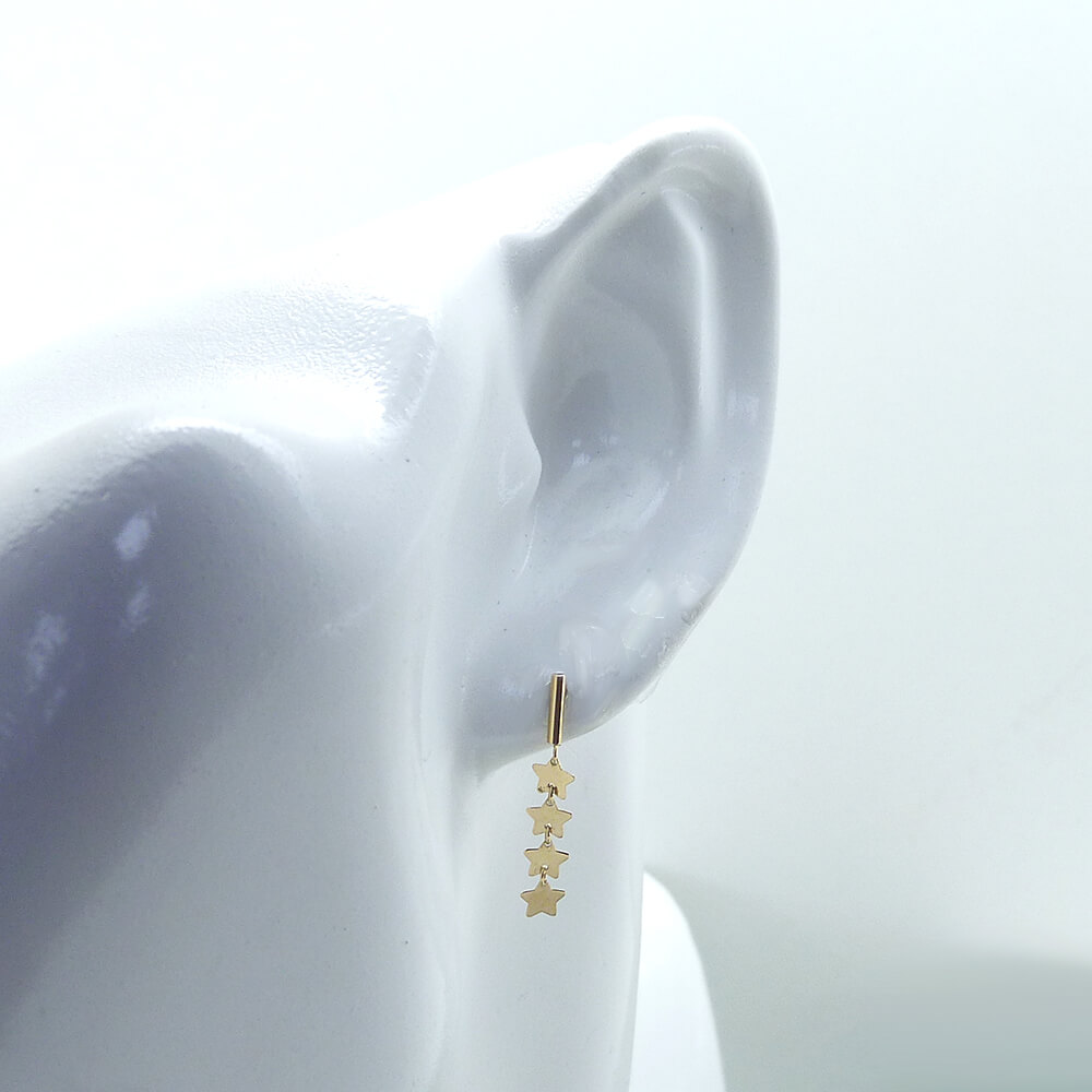 Pendientes largos brillo espejo estrellas y barra medida 25mm. con cierre de presión en oro amarillo de 18k.