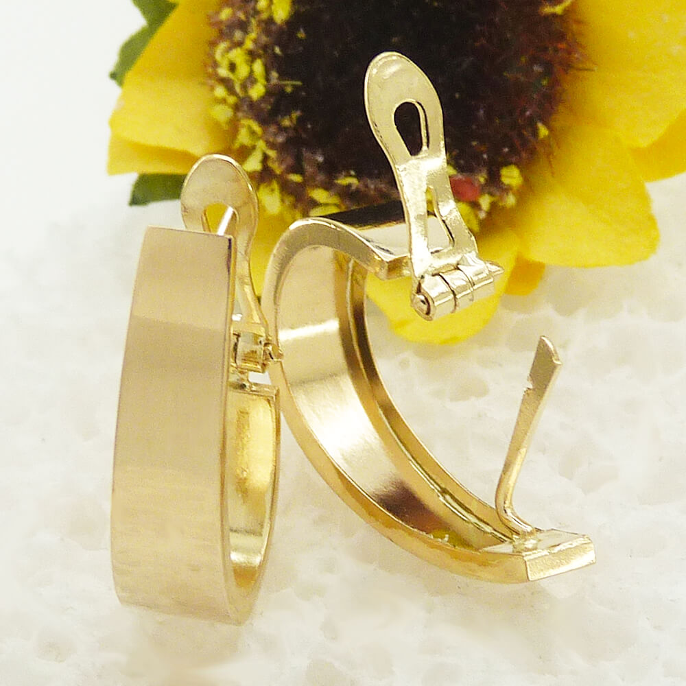 Pendientes medio aro plano en brillo liso medida de 20x6mm en oro amarillo de 18k