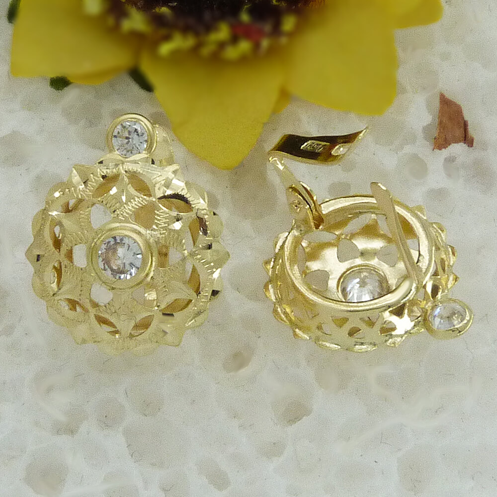 Pendientes modelo cubana pequeña circonitas 12mm. oro 18k