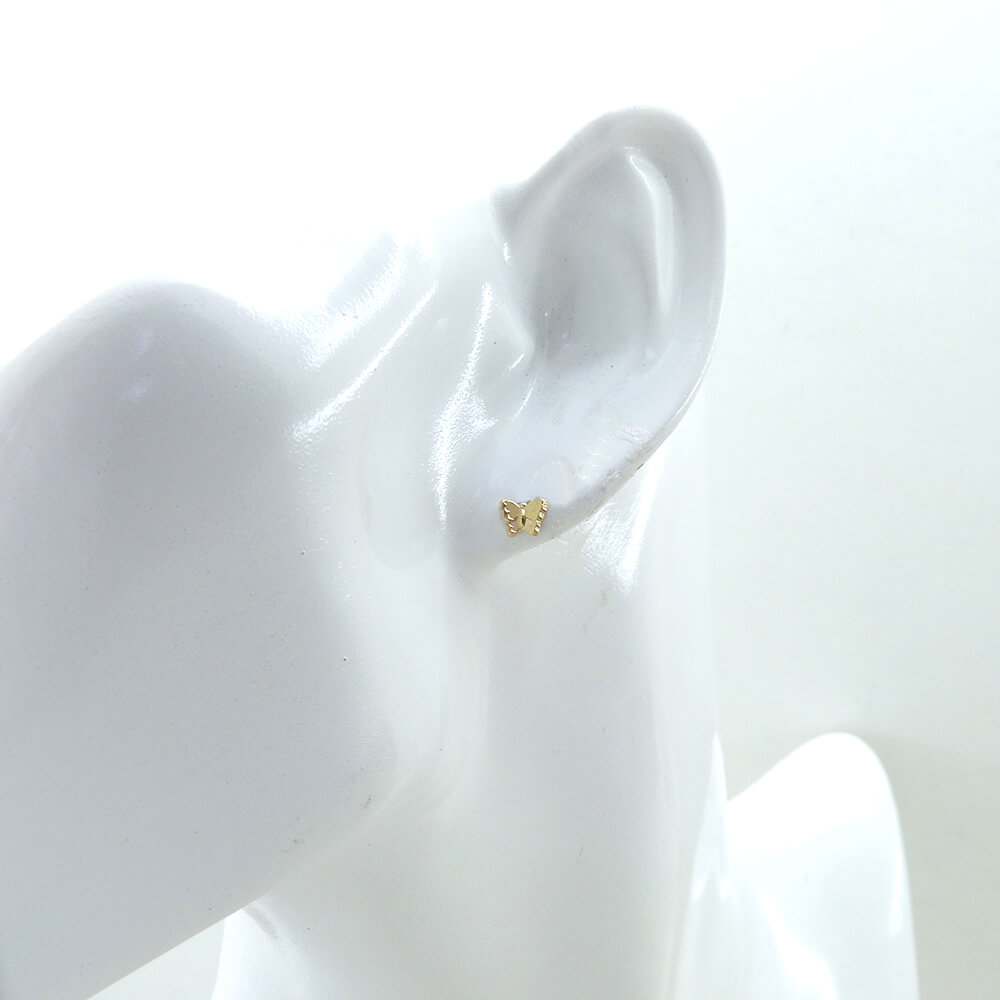 Pendientes con forma de mariposa en brillo medida de 6mm.Cierre de rosca, oro amarillo de 18k