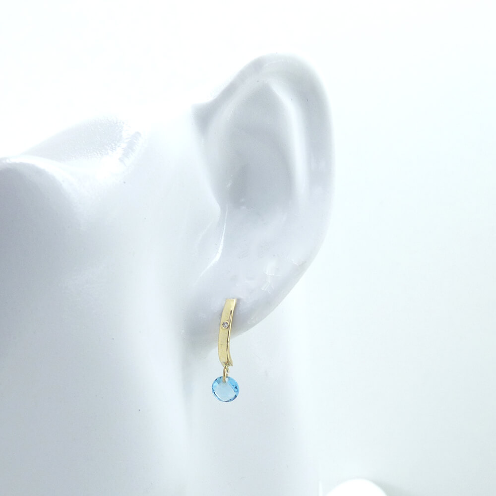 Pendientes oro y aguamarina.Cierre presión.