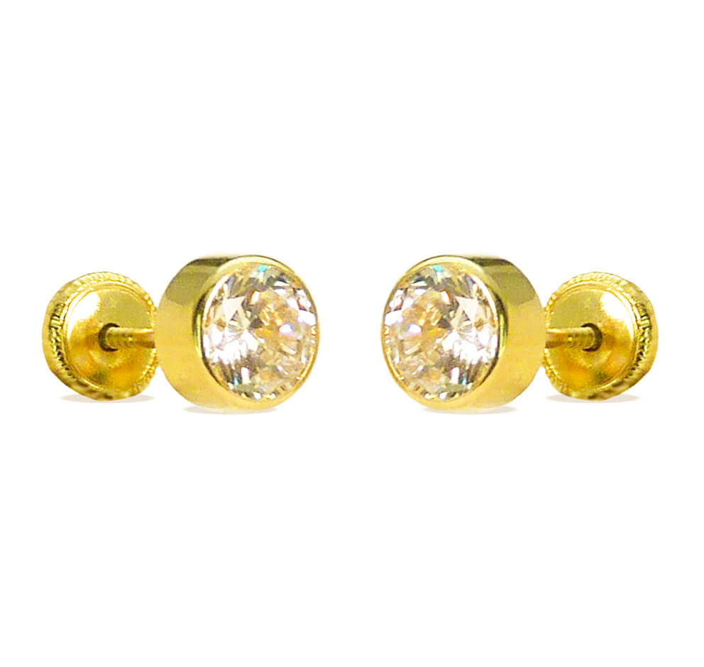 Pendientes circonitas boceladas brillo espejo medida 5mm. cierre de rosca en oro amarillo de 18k.