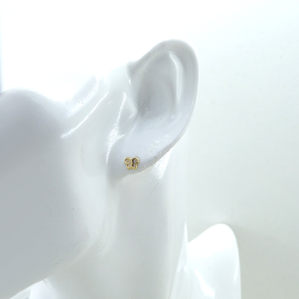 Pendientes mariposa calada y circonitas 5’5mm. oro 18k