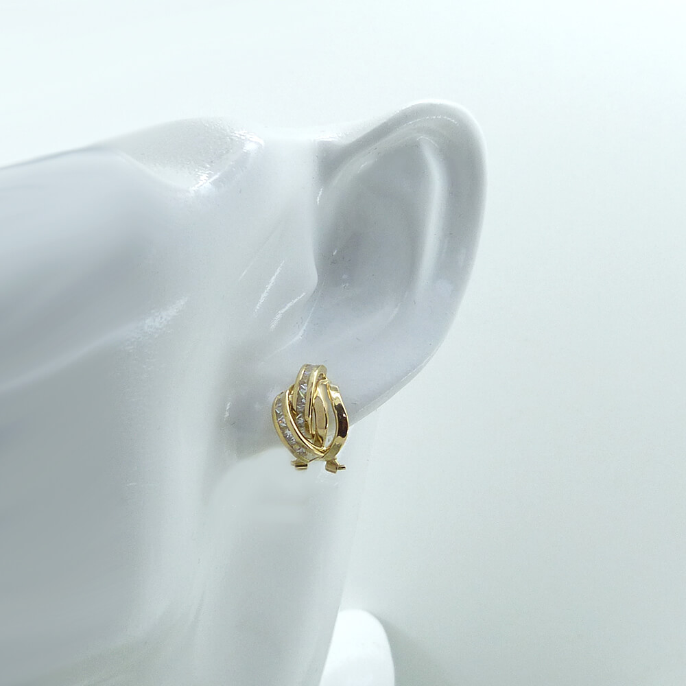 Pendientes bandas con circonitas, medida de 15x9mm.cierre de omega en oro amarillo de 18k