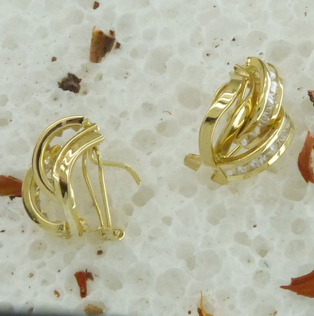 Pendientes oro y circonitas carré.Cierre omega.15x9mm.