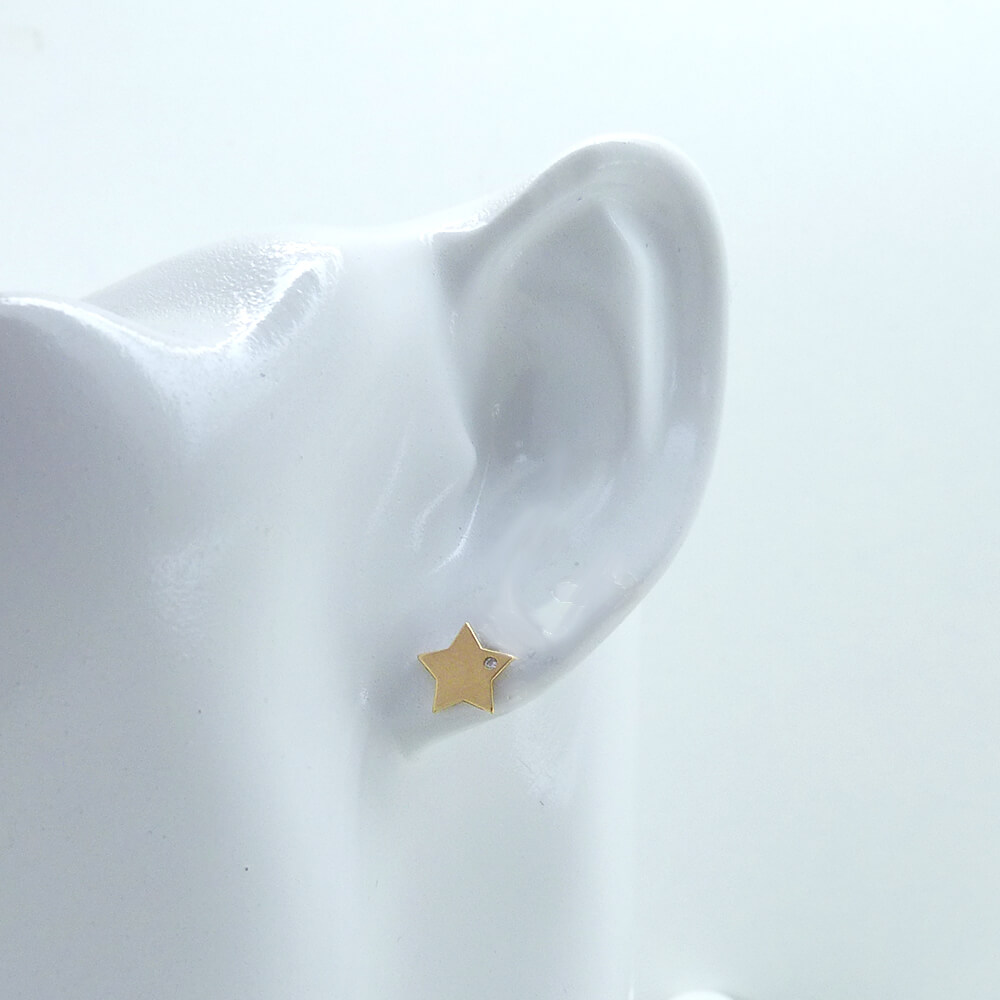 Pendientes en forma de estrella lisa con circonita, medida de 8’5mm.cierre de presión oro amarillo de 18k