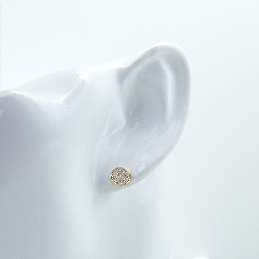 Pendientes redondos lisos brillo espejo y circonitas medida 7mm. cierre de presión en oro amarillo de 18k.