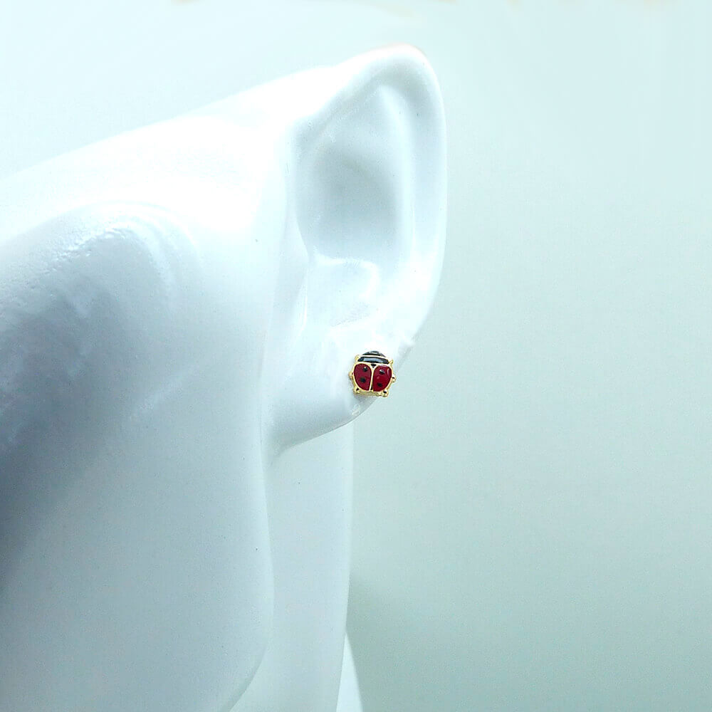 Pendientes oro y esmalte,mariquitas de 7mm.Espalda cerrada.