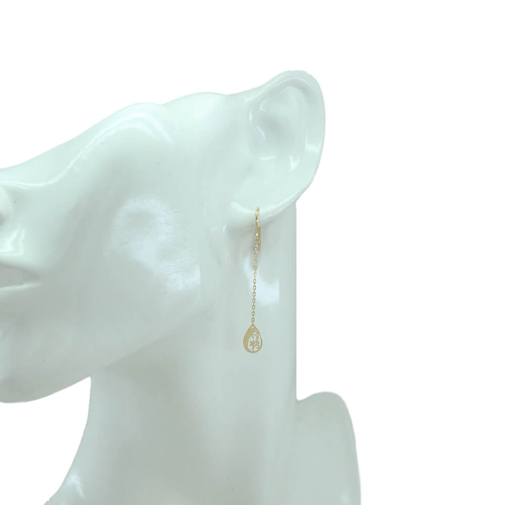 Pendientes mujer cadena fina eslabones filigrana palillo hippie medida 45mm.de largo oro 18k