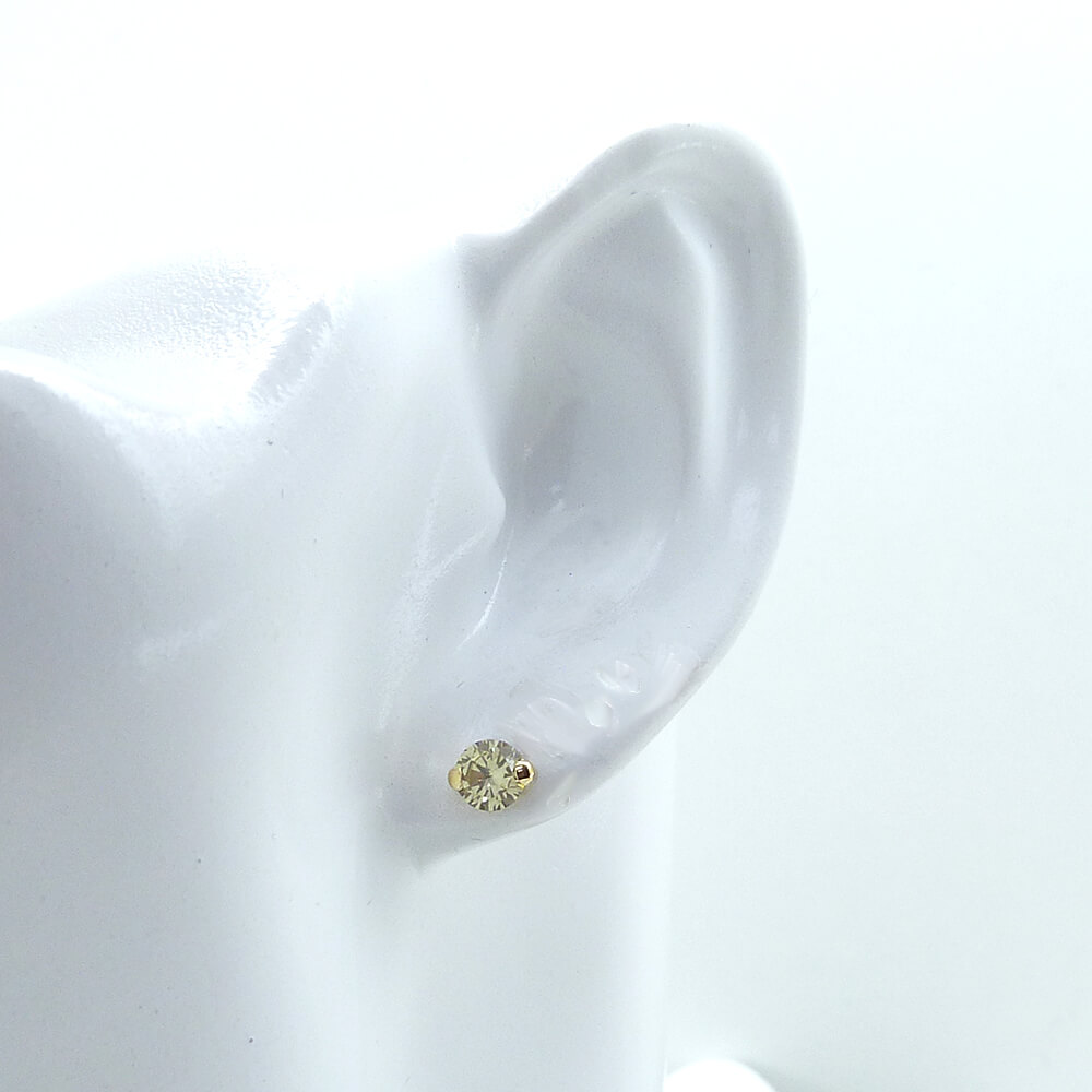 Pendientes 2 garras brillo con piedra color citrino redonda de 5mm. cierre de presión en oro amarillo de 18k.