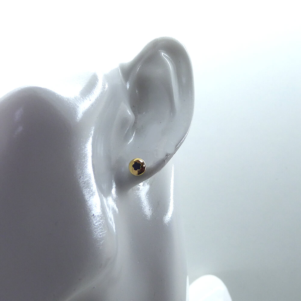 Pendientes redondos 6mm flor con piedra negra.