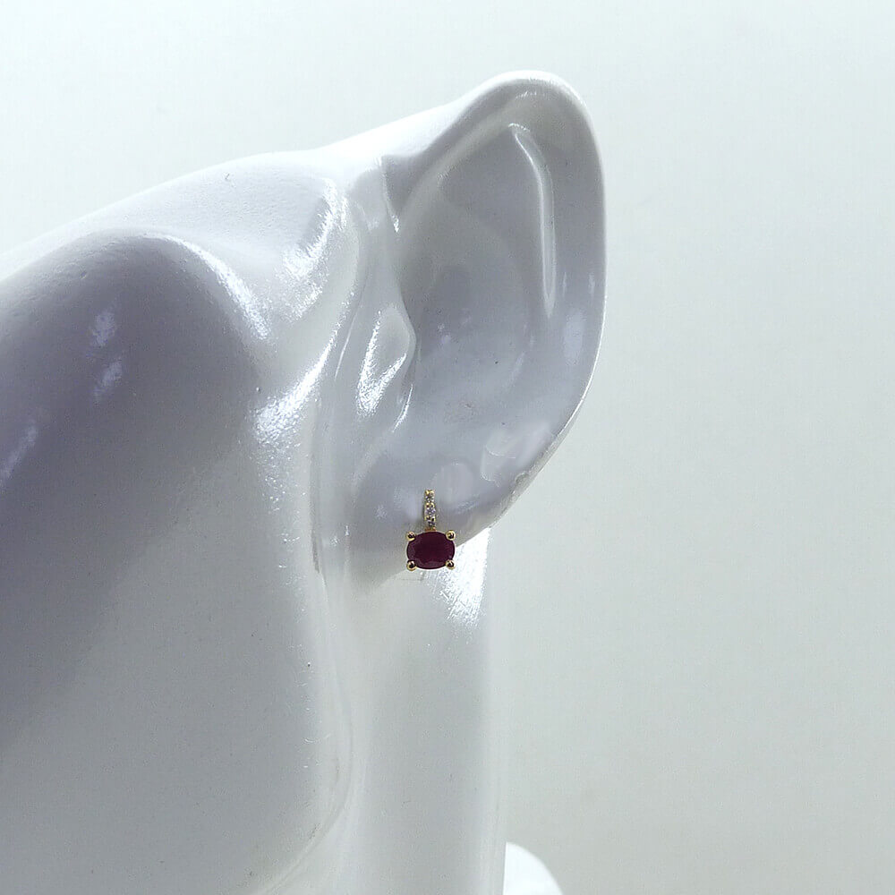 Pendientes rubí oval 4 garras diamantes oro 18k